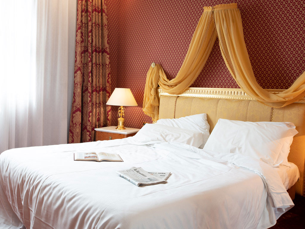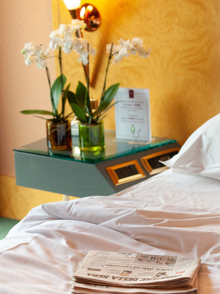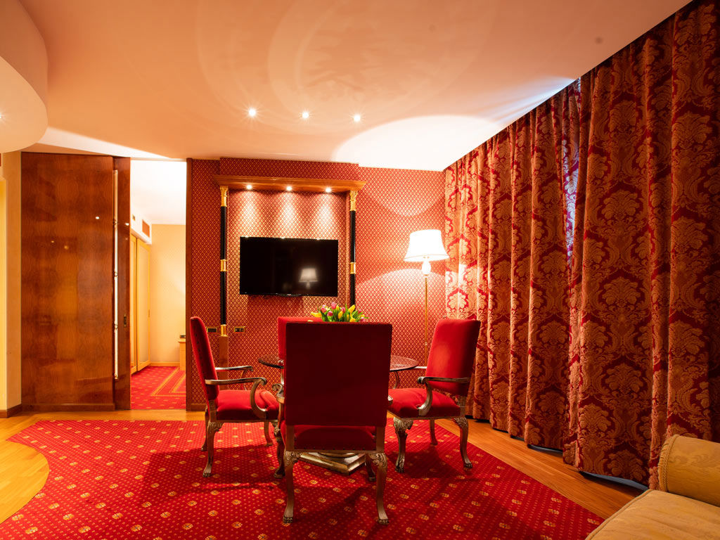 It is composed of two double bedrooms, two bathrooms and an elegant living room for a total of about 50 m². A bright suite, enriched with carpet and hardwood flooring and made even more precious by its luxurious furniture and curtains, for a uniquely comfortable stay.