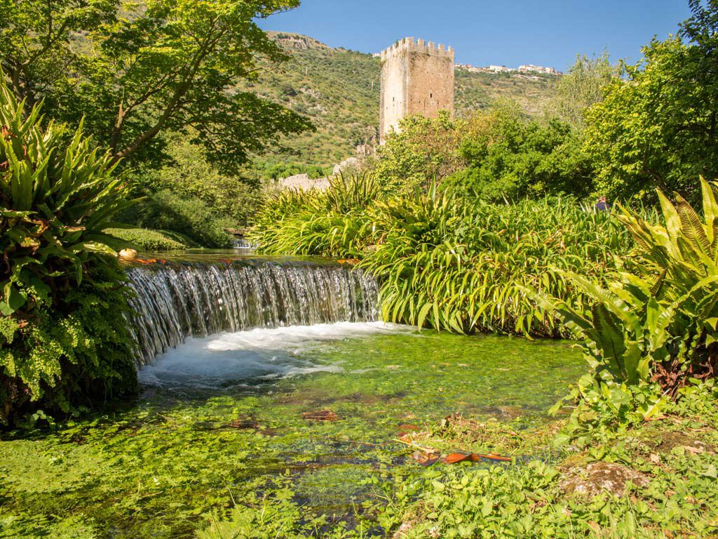 Il Giardino di Ninfa è un riserva eccezionale di otto ettari ai piedi dei monti Lepini, l’habitat è costituito dal fiume Ninfa, dove, sugli antichi ruderi di una città perduta (la città di Ninfa), crescono piante rare e secolari.