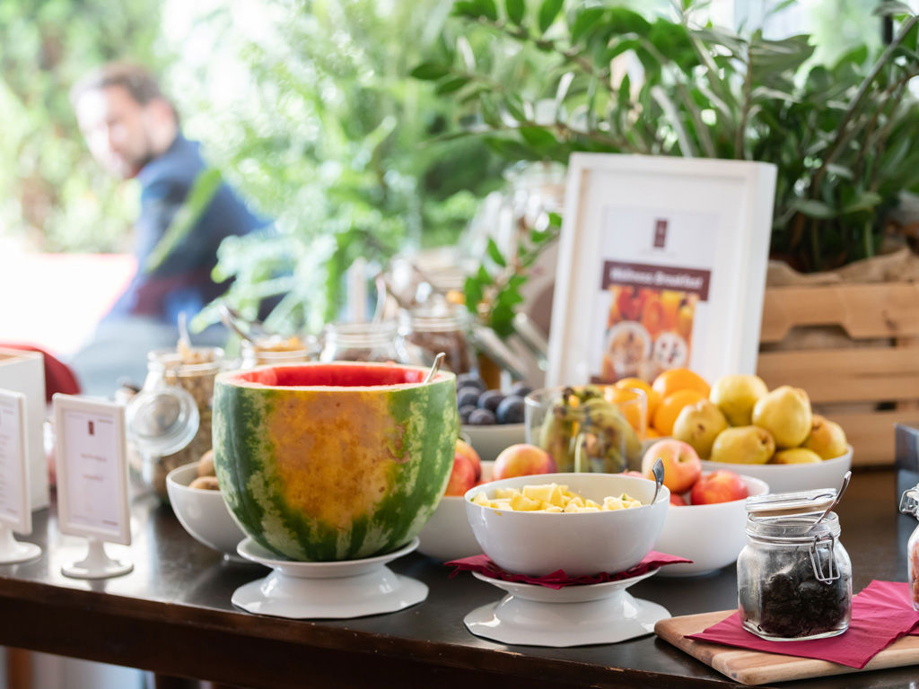 La vostra giornata a Vicenza inizierà al meglio con la ricca e genuina colazione di SHG Hotel De La Ville, servita in un ambiente accogliente e luminoso, dove potrete sorseggiare piacevolmente un caffè espresso o un cremoso cappuccino, oppure scegliere tra una vasta selezione di thè e succhi di frutta. Il nostro buffet saprà deliziarvi con un’ampia scelta di dolci preparati in casa dal nostro chef, come torte fatta in casa, crostate e biscotti.